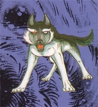 Gaia is a big black-and-white Hokkaido Wolf. He has a slashed right eye and it's unknown how he got it.
