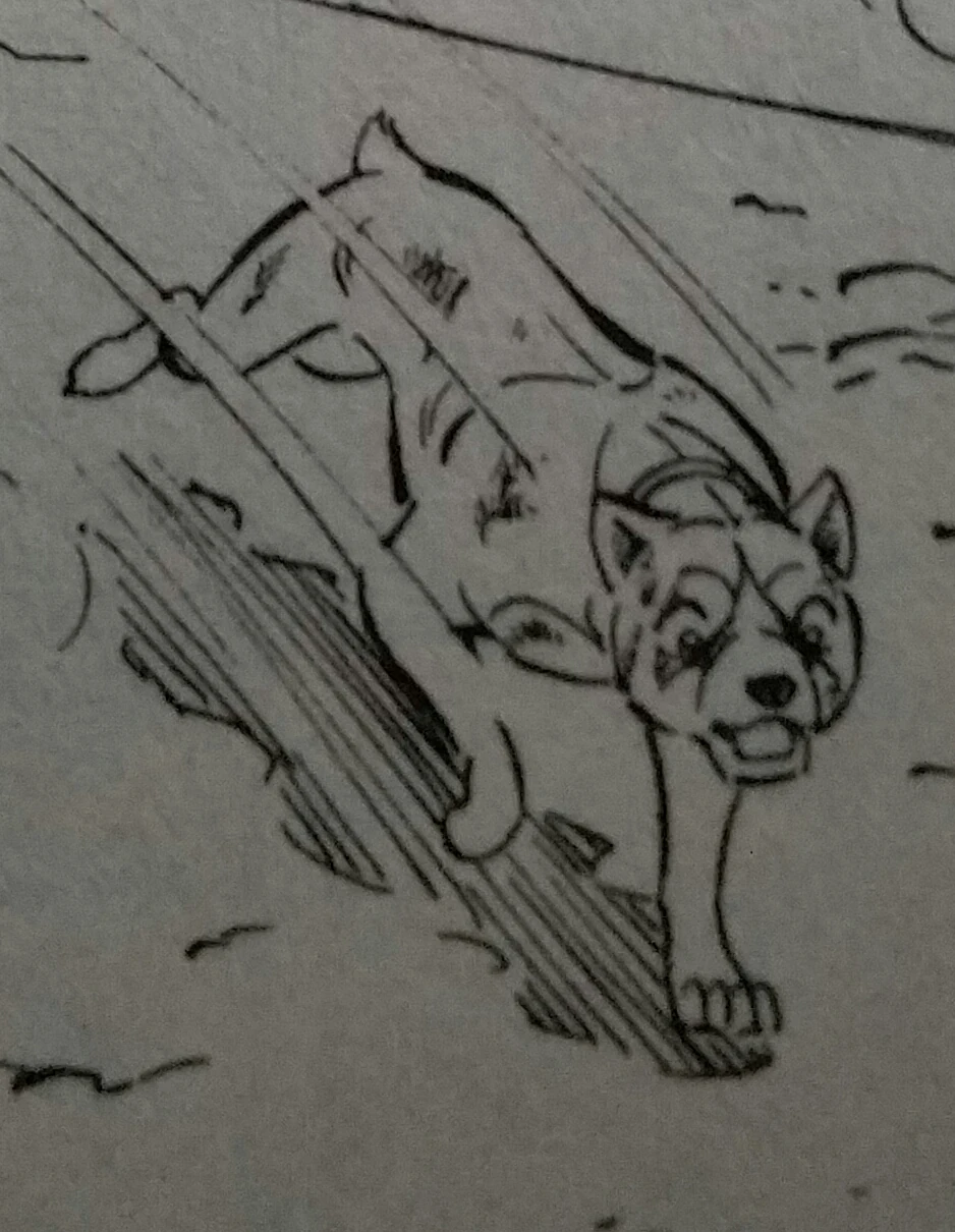 The rogue dogs are eager to defeat their trespasser and they tear off most of Kotetsu's tail. Weed rescues Kotetsu scaring the pack of rogue dogs away and brings him back to his worried sister.