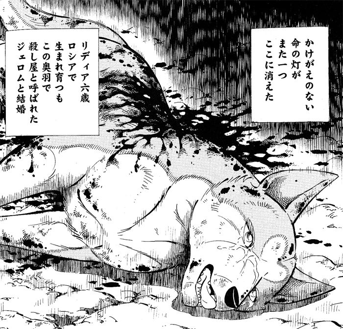 Jerome tries to tell her that beyond Hokkaidō is Ōu, where dogs can live peacefully with one another without conflict, but she insists on following her orders under penalty of death. After Hakurō is killed, Jerome is taken hostage once more by Viktor, after Lydia tells him that they need Jerome alive in case the Ōu army attacks them.