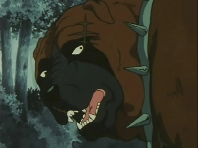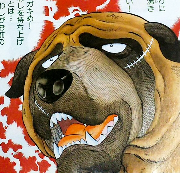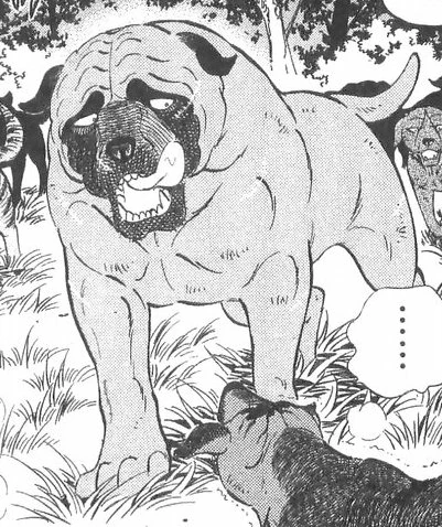 He wore a brown collar (greenish-spiked in the anime) around his neck, revealing that he was once a pet. Moss was the biggest dog in Ginga Nagareboshi Gin while the biggest wolf is Mukonga.
