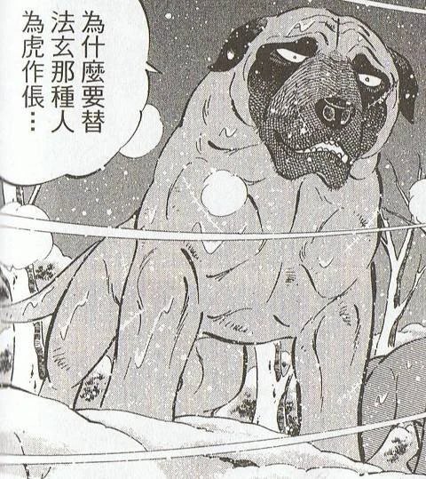 Moss was an impatient and a bit short-tempered dog. He might get scary when angry, with an appearance like that. He didn't listen to rational talk while being overwhelmed by emotions.