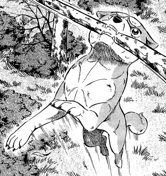 Monsoon chases Orion and leaps over the dog's corpse before he went in the woods. He planned to regain his composure by entering the woods and figured the standing trees would put stop to Monsoon's rampage. Monsoon tried attack Orion and he kept moving. He yells at Monsoon that he took him lightly, cause he's still alive. He tells Sirius to leave and explains that when Monsoon comes out of the woods, he gonna use that technique to settle it. Sirius ask him if he talking about the Battouga and it's impossible as that move can't possibly have any effect on Monsoon. Orion charges at Monsoon and tell everyone this is where it ends and if his move doesn't work, then he'll just die trying.