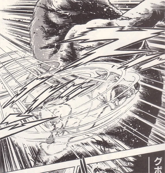Riki is badly wounded, and uses his last ounce of strength to throw Gin to safety. Riki is too exhausted to drag himself to safety, and Akakabuto throws him into a deep crevasse.