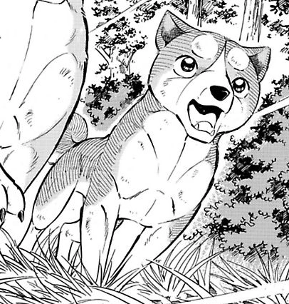 Then, they see a group of hunting dogs, Shion notices that the dogs belong forest watchmen but understanding the danger they're in the two leave to warn them.
