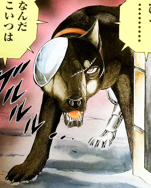 While waiting for Weed to come, Sniper travels out of the fortress many times to kill Gin but has to return empty-handed as the Akita is in guard of humans. Finally, Weed shows up and challenges Sniper. Sniper fights fiercely against Weed and as a lest resort the young dog uses Zetsu Tenrō Battōga which wounds Sniper badly and makes his metal plate fall off.