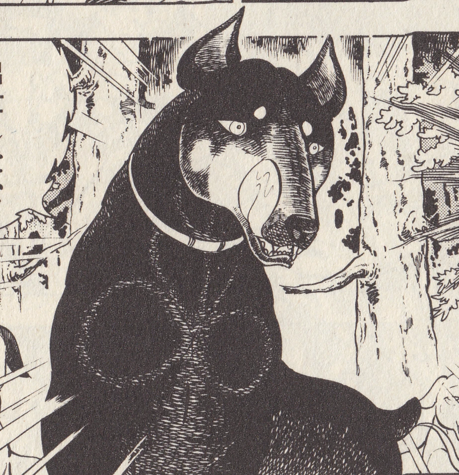 Sniper is the general of Riki’s pack. When he meets Gin for the first time, he at first belittles him for being a kid, and thinks little of him. When Gin hops onto the rocks atop Ōu to get a better look at Riki, having suspiscions that he's his father, and at last confirming it, Sniper attacks him for his so-called "impoliteness", resulting in a small brawl between the two dogs.